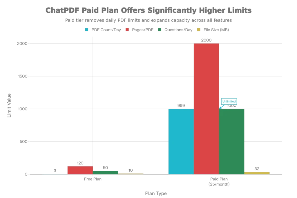 ChatPDF Free vs. Paid Plan Feature Comparison