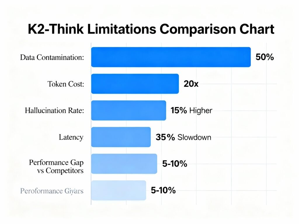 K2-Think, the 32-billion parameter reasoning model released by the UAE’s Mohamed bin Zayed University of Artificial Intelligence (MBZUAI) and G42 in September 2025, has attracted significant media attention for claims of rivaling much larger models like GPT-OSS 120B and DeepSeek v3.1. However, independent academic analysis from institutions including ETH Zürich reveals critical limitations involving data contamination affecting 50% of benchmark tests, hallucination rates comparable to older models, token costs multiplying inference expenses 20 times beyond standard models, and actual performance 5-10% lower than published claims when external assistance is removed. This comprehensive analysis examines these overlooked constraints and their real-world implications for production deployments.