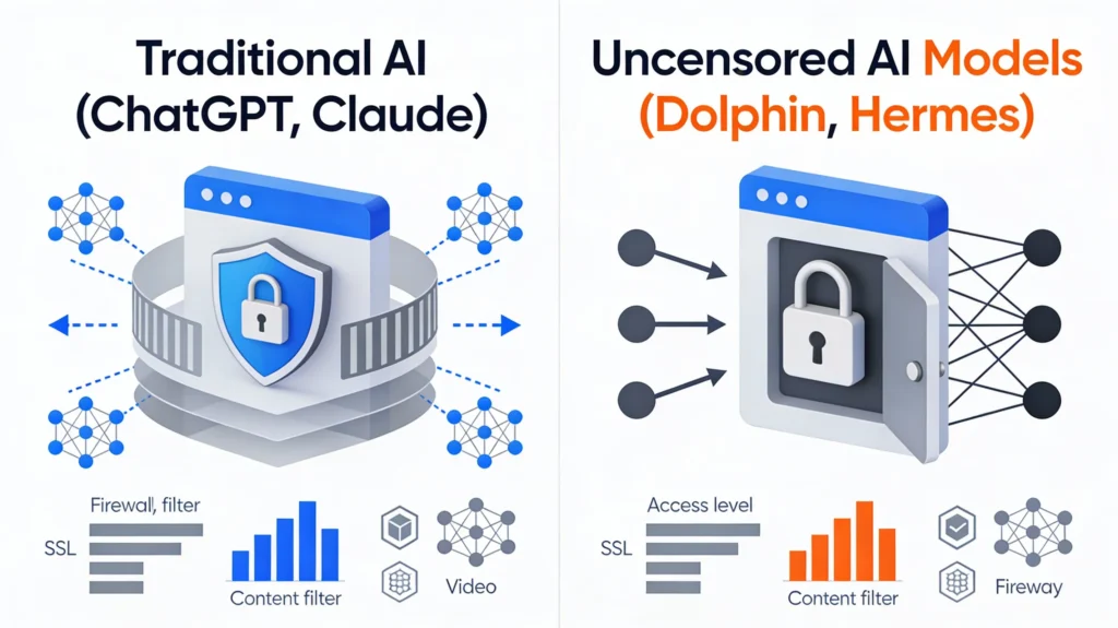 Uncensored AI models are large language models (LLMs) that operate without built-in content filters, safety alignment mechanisms, or ethical guardrails. Unlike traditional commercial AI systems trained with extensive safety protocols, uncensored models are fine-tuned versions of open-source base models that have been stripped of their refusal mechanisms. These models can generate responses on virtually any topic—from harmful instructions to dangerous technical information—without the typical warnings, refusals, or ethical disclaimers that regulated AI systems provide.