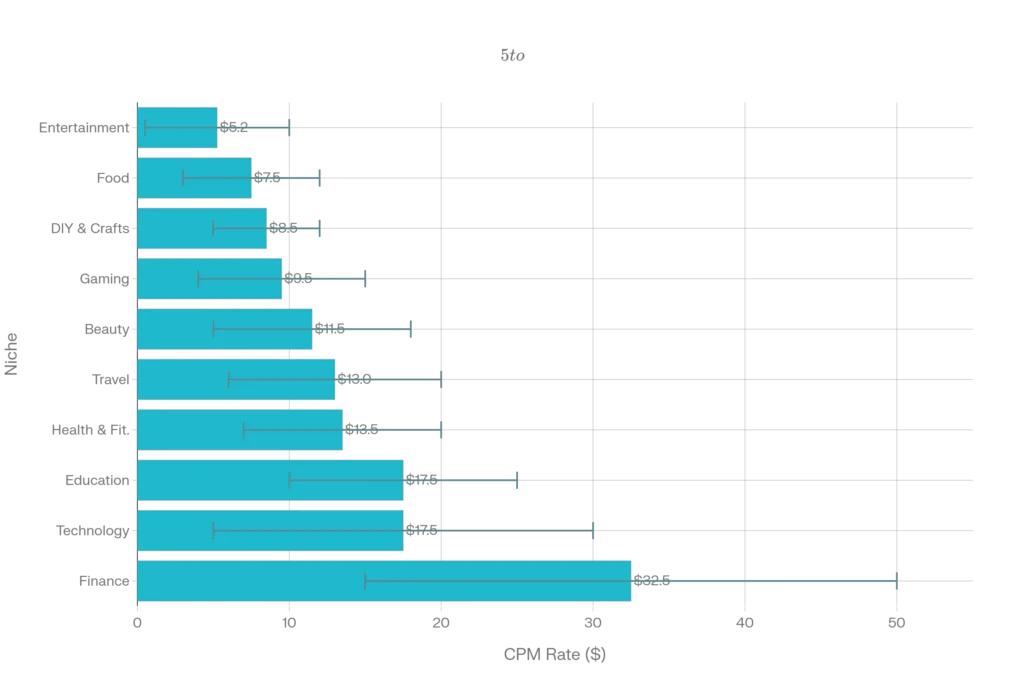 The Problem: Even perfect execution in gaming/entertainment niches earns $2–$7.50 RPM vs. finance’s $4.95–$16.50 RPM.